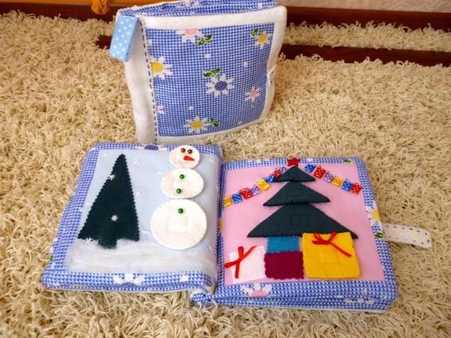 Это целый дидактический комплекс. Количество страниц зависит от фантазии, терпения и трудолюбия родителей. Для ее создания потребуются отрезы ткани формата А4, синтепон, кусочки разноцветного материала, пуговки, молнии и все, что вы найдете для творчества дома.